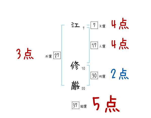 江修厳さんの画数の鑑定結果