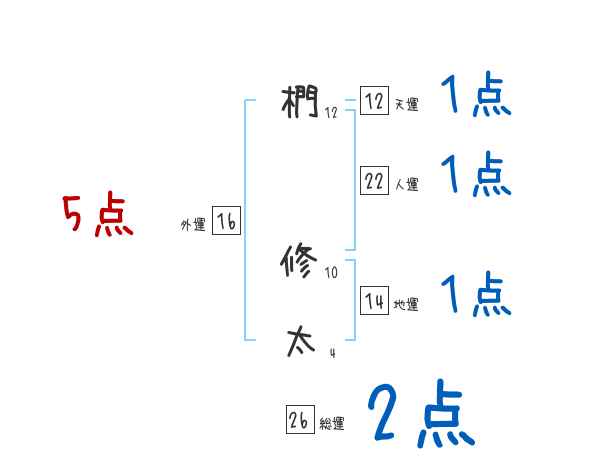 外運![]() | 椚修太さんの外運は16画の5つ星!人望が厚く大きく発展する。逆転成功が見える。 生活面を象徴する運勢です。外部から受ける影響力を表し、結婚運、家庭運や職場、環境への順応性を表します。 |