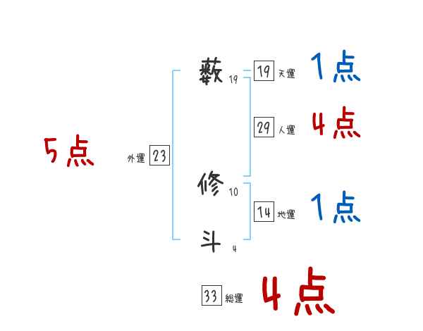 薮修斗さんの画数の鑑定結果