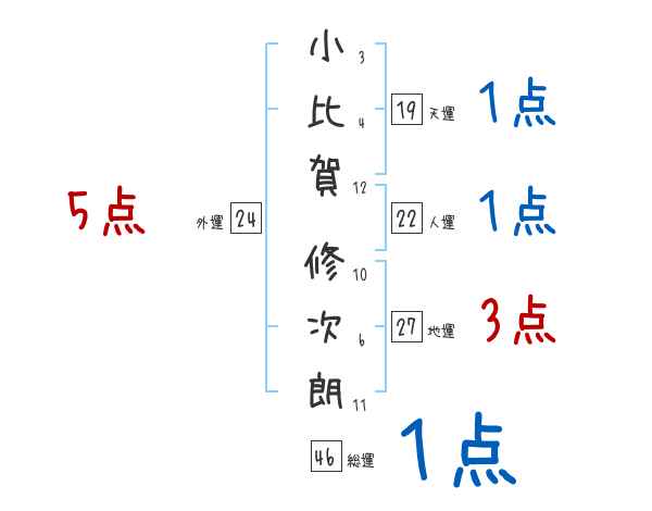 小比賀修次朗さんの画数の鑑定結果