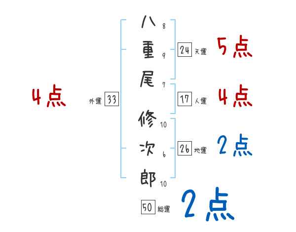 八重尾修次郎さんの画数の鑑定結果