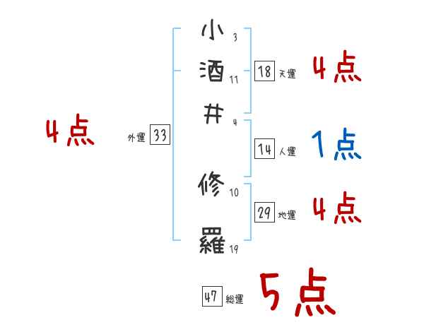 小酒井修羅さんの画数の鑑定結果
