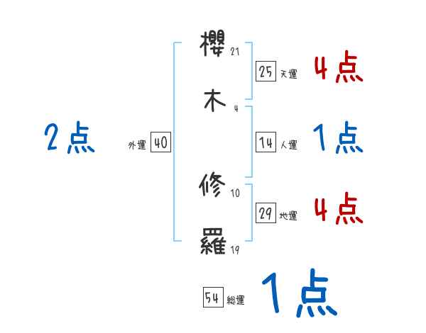 櫻木修羅さんの画数の鑑定結果