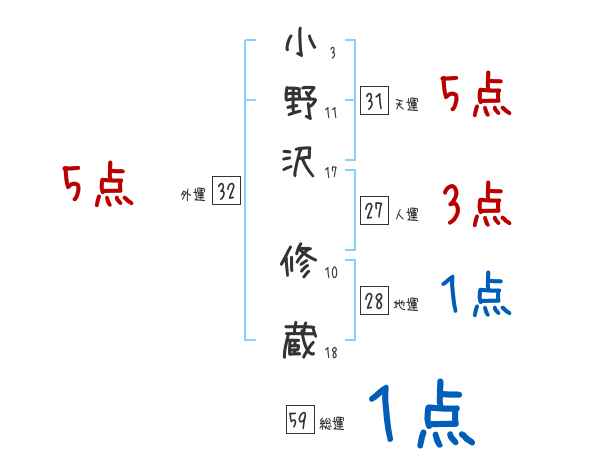 小野沢修蔵さんの画数の鑑定結果