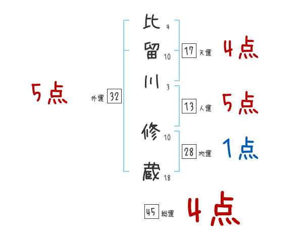 比留川修蔵さんの画数の鑑定結果