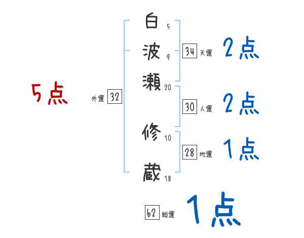 白波瀬修蔵さんの画数の鑑定結果