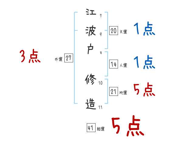 江波戸修造さんの画数の鑑定結果