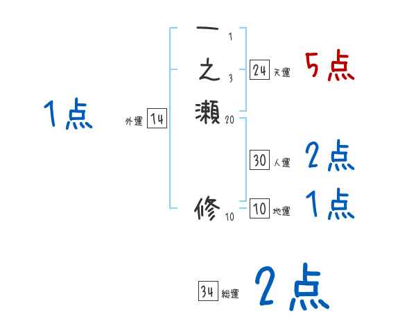 一之瀬修さんの画数の鑑定結果