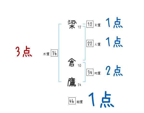 梁倉鷹さんの画数の鑑定結果