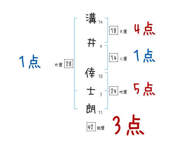 天運![]() | 溝井倖士朗さんの天運は18画の4つ星!情熱的で剛気。忍耐力があり信頼される。 家系が持つ宿命的な運勢を表します。祖先から受け継いだ苗字ですので自分の力が及びません。家柄を象徴します。 |