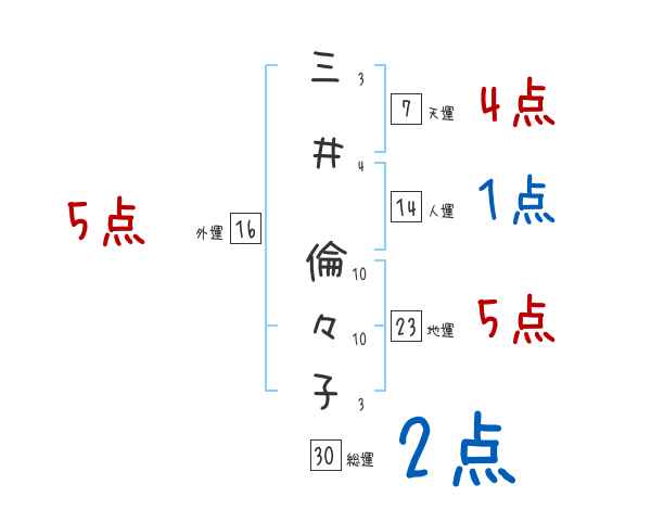 三井倫々子さんの画数の鑑定結果