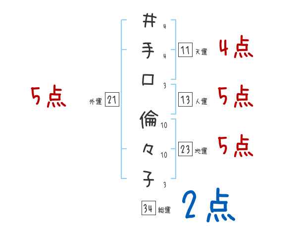 井手口倫々子さんの画数の鑑定結果