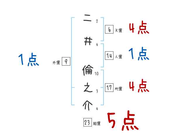 天運![]() | 二井倫之介さんの天運は6画の4つ星!慎重な努力家で信頼を得る。誠実な精神で向上心に優れる。 家系が持つ宿命的な運勢を表します。祖先から受け継いだ苗字ですので自分の力が及びません。家柄を象徴します。 |