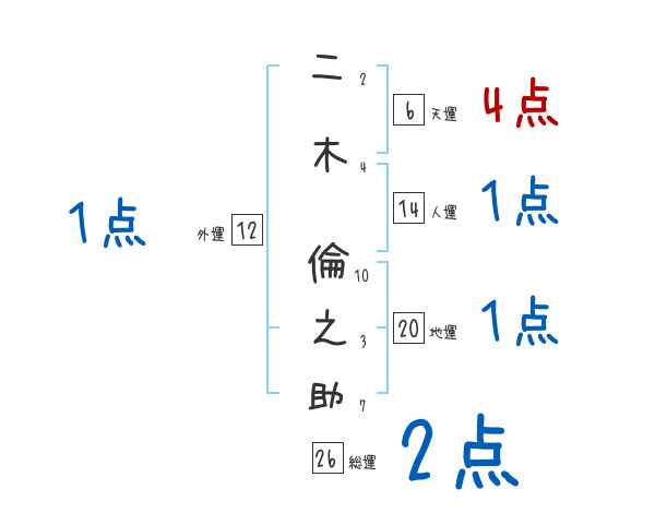 二木倫之助さんの画数の鑑定結果