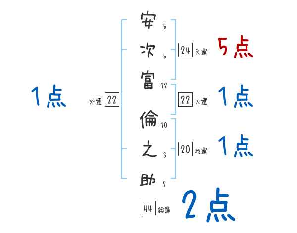 安次富倫之助さんの画数の鑑定結果