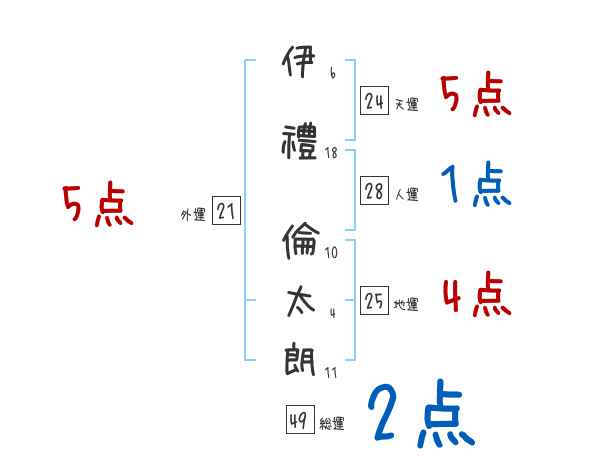 伊禮倫太朗さんの画数の鑑定結果