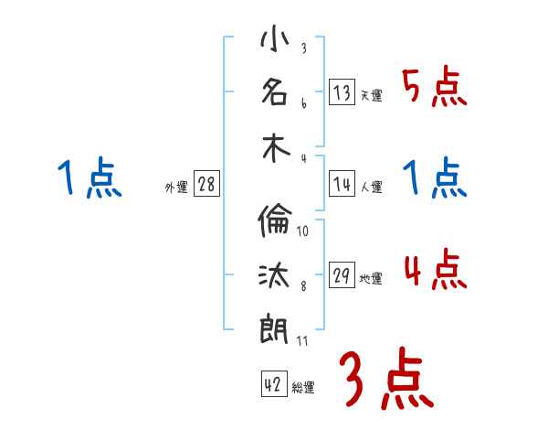 小名木倫汰朗さんの画数の鑑定結果