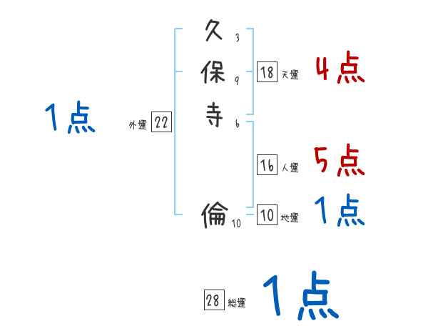 総運![]() | 久保寺倫さんの総運は28画の1つ星!家庭環境に注意。スポーツで活躍できる能力があるかも。 あなたの人生を表す1番重要な運勢です。生涯を通じて影響する総合運となり、主に50歳以降の晩年期に影響を及ぼします。 |