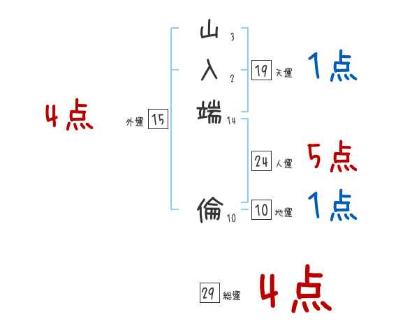 天運![]() | 山入端倫さんの天運は19画の1つ星!優れた才能を持ちますが、協調性が足りないことも。周りの人と協力する事を意識しましょう。 家系が持つ宿命的な運勢を表します。祖先から受け継いだ苗字ですので自分の力が及びません。家柄を象徴します。 |