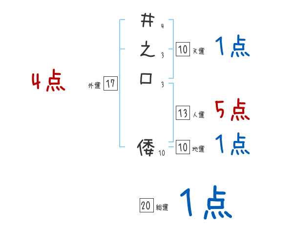 天運![]() | 井之口倭さんの天運は10画の1つ星!不安を感じやすい傾向。ストレスを抱えないように注意しましょう。 家系が持つ宿命的な運勢を表します。祖先から受け継いだ苗字ですので自分の力が及びません。家柄を象徴します。 |