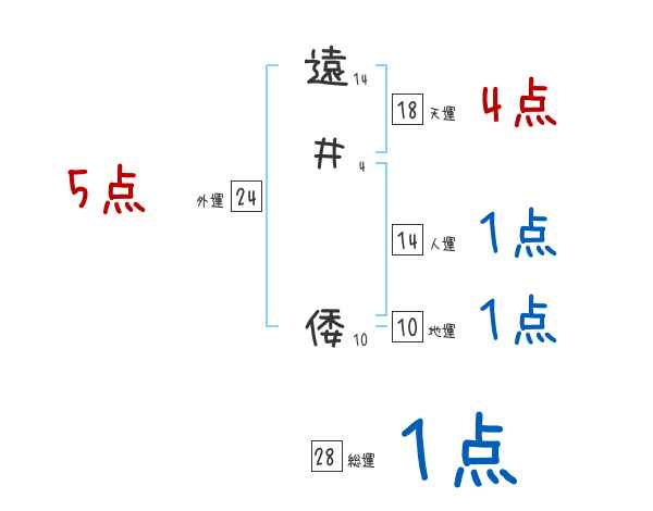遠井倭さんの画数の鑑定結果