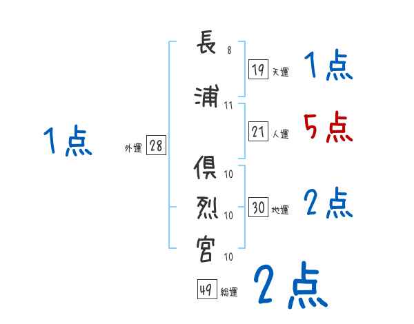 長浦倶烈宮さんの画数の鑑定結果