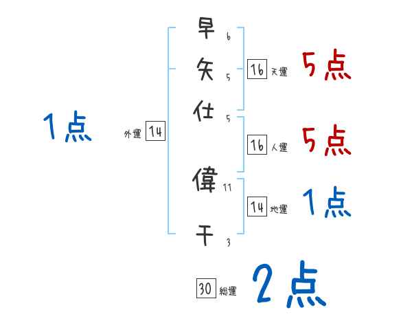 人運![]() | 早矢仕偉千さんの人運は16画の5つ星!人望が厚く大きく発展する。逆転成功が見える。 性格や才能などを表す2番目に重要な運勢です。人間関係や協調性、社会的な成功に影響します。主に20歳から50歳ぐらいまでの中年期の運勢を表します。 |