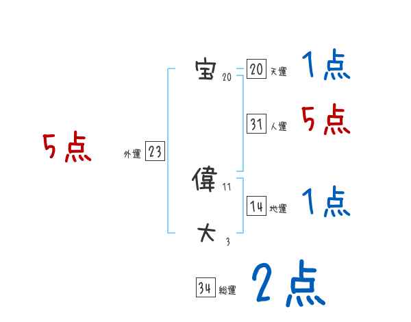 宝偉大さんの画数の鑑定結果