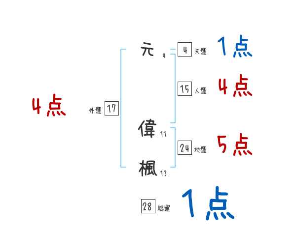 元偉楓さんの画数の鑑定結果