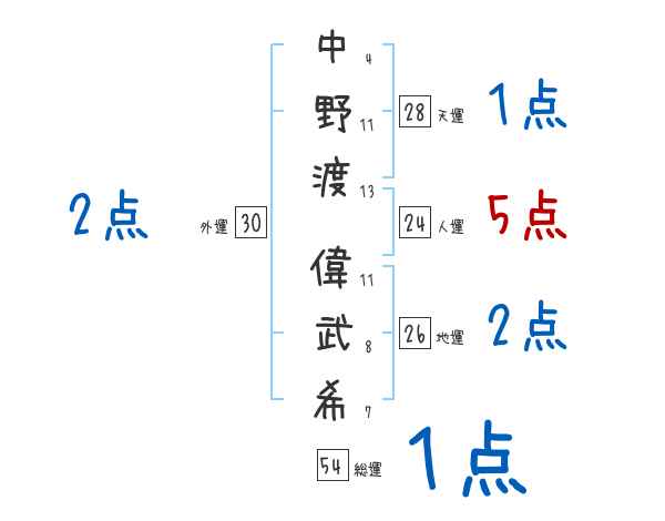 中野渡偉武希さんの画数の鑑定結果