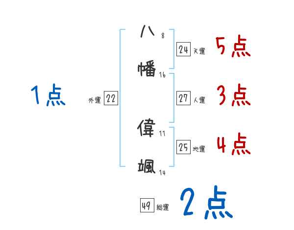 八幡偉颯さんの画数の鑑定結果