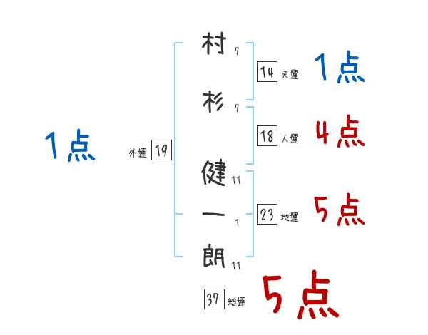 村杉健一朗さんの画数の鑑定結果