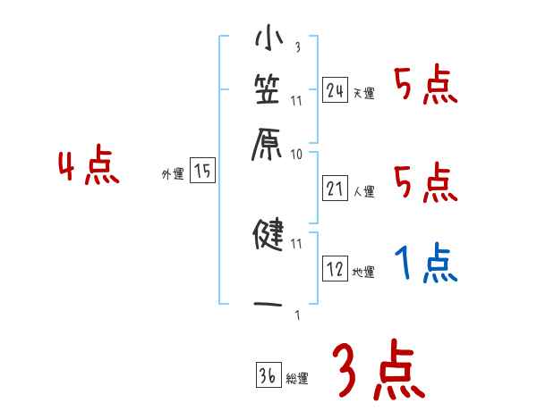 小笠原健一さんの画数の鑑定結果