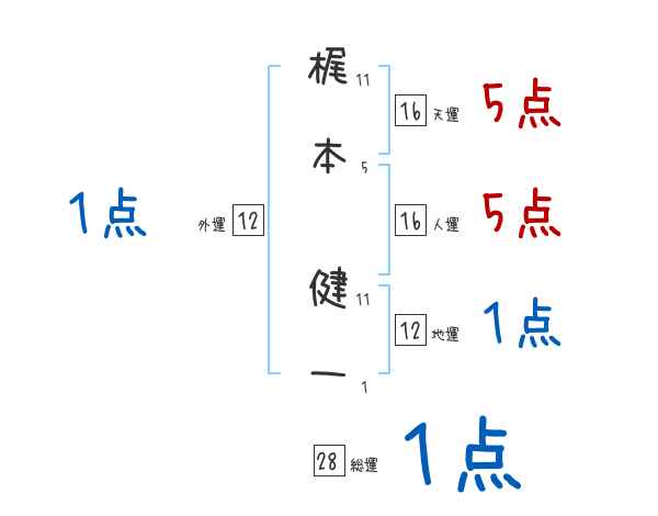 梶本健一さんの画数の鑑定結果