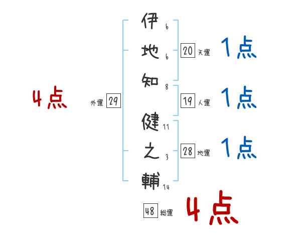 伊地知健之輔さんの画数の鑑定結果