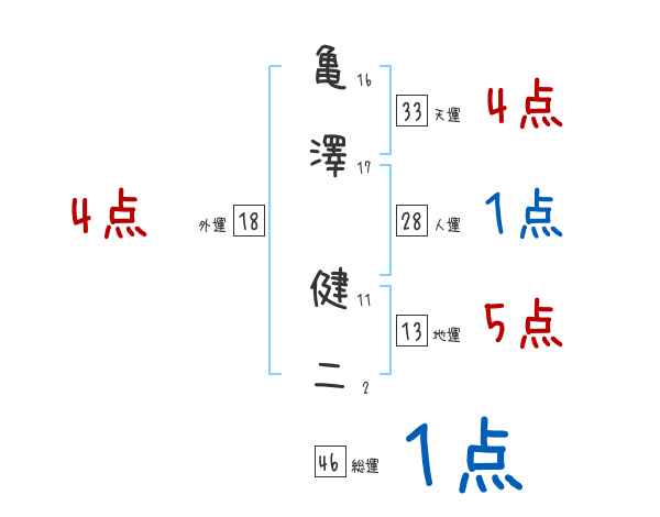 亀澤健二さんの画数の鑑定結果