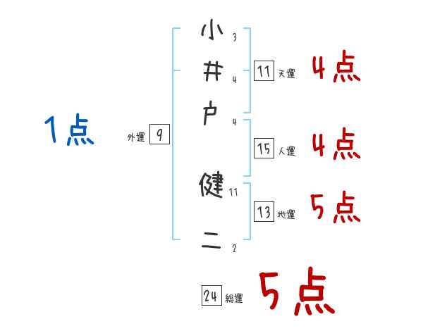 小井戸健二さんの画数の鑑定結果