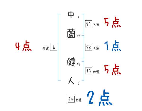 中薗健人さんの画数の鑑定結果