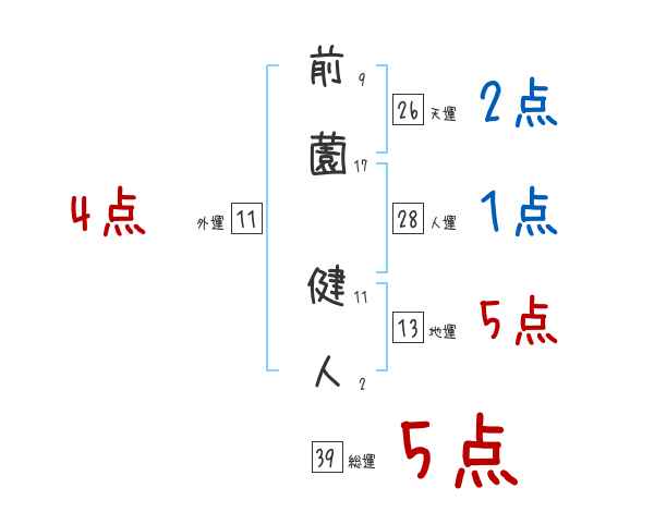前薗健人さんの画数の鑑定結果