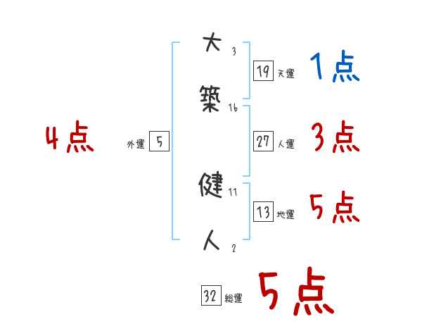 大築健人さんの画数の鑑定結果
