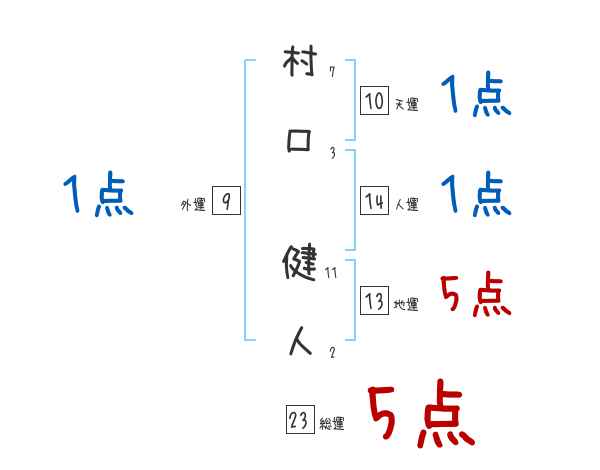 村口健人さんの画数の鑑定結果