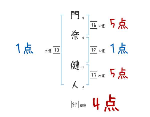 門奈健人さんの画数の鑑定結果