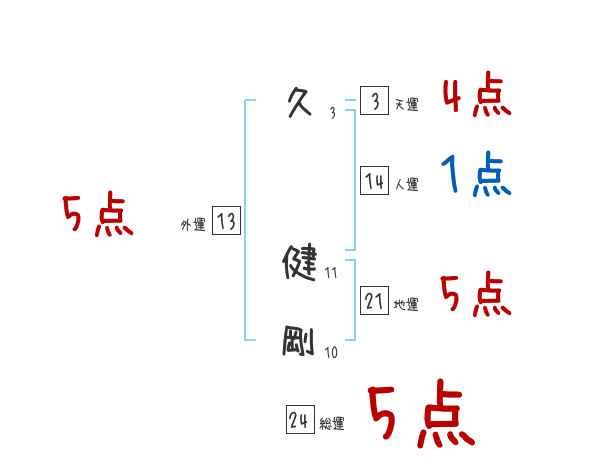 久健剛さんの画数の鑑定結果