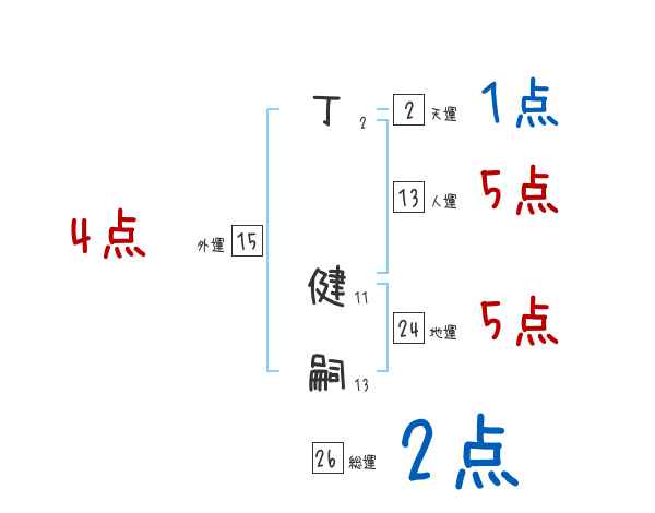 丁健嗣さんの画数の鑑定結果