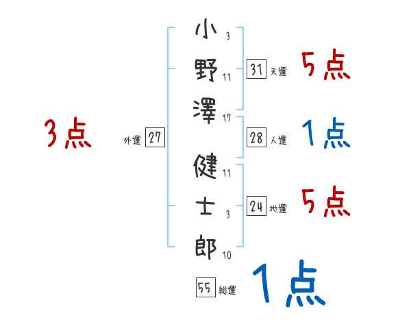 小野澤健士郎さんの画数の鑑定結果