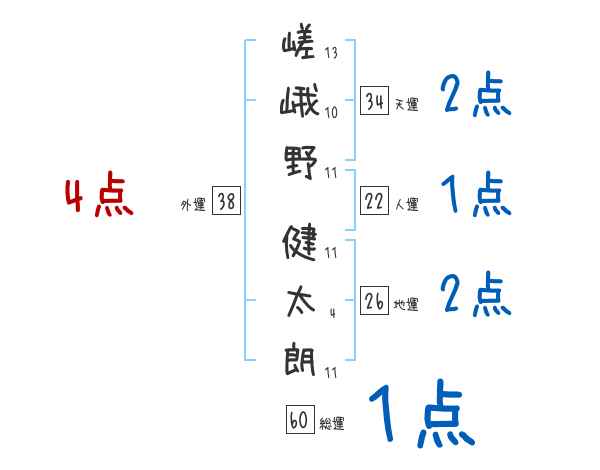 嵯峨野健太朗さんの画数の鑑定結果