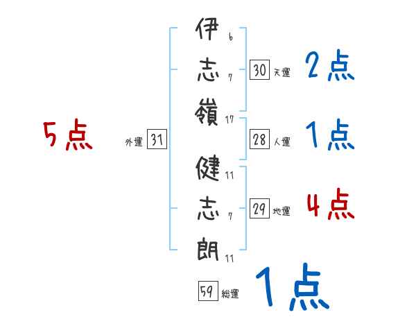伊志嶺健志朗さんの画数の鑑定結果