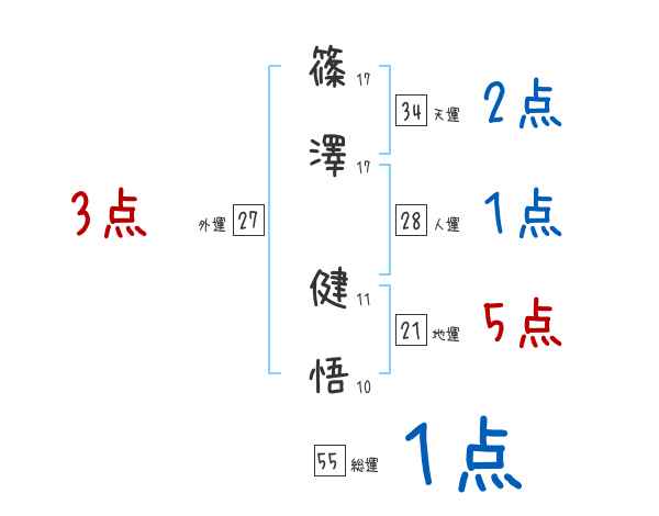 篠澤健悟さんの画数の鑑定結果