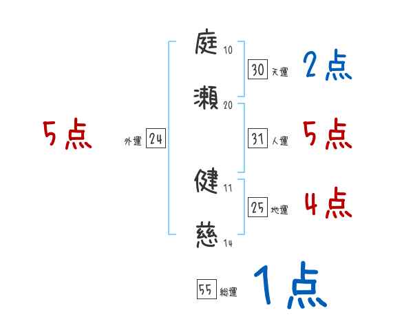 庭瀬健慈さんの画数の鑑定結果