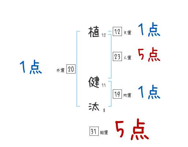 植健汰さんの画数の鑑定結果